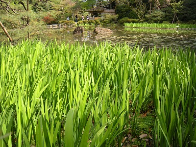 杜若はだいぶ背が伸びてきました(中神苑)。