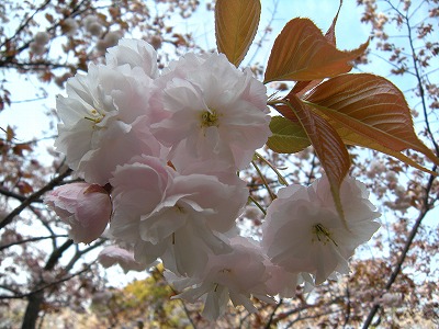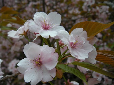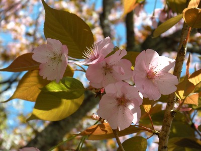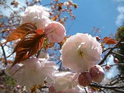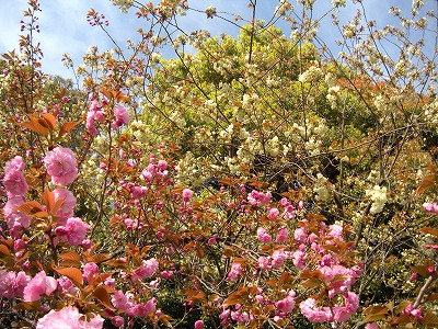里桜と鬱金桜。 まだ三分咲といったところです。