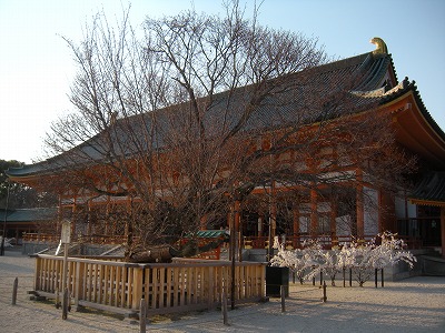 京都は今朝も雪が降りました。 今は霙となったり、晴れ間が出たりと不安定なお天気で、ぴりっと肌に刺さるような寒さです。神苑の桜の蕾も寒さで縮こまってしまっているようでした。