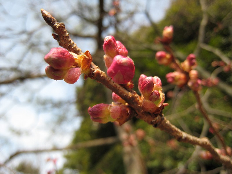 寒緋桜に続いて咲く桜です。 開花は来月の頭頃でしょうか。