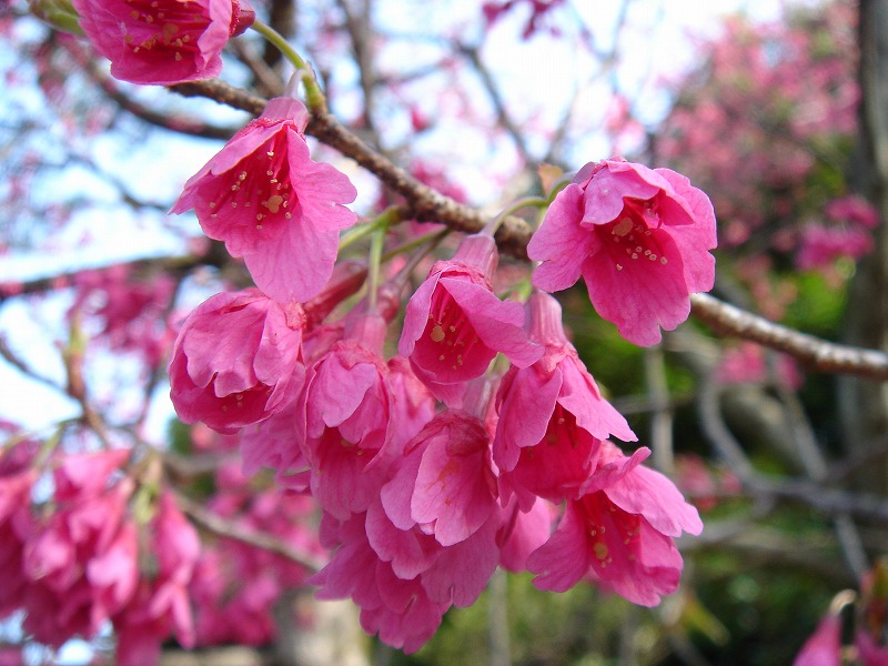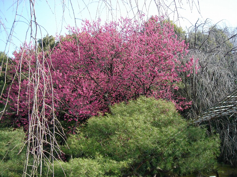 今日の画像は、中神苑と東神苑双方から望める「寒緋桜(カンヒザクラ)」です。例年、昨日紹介したオオシマザクラよりも早く花を咲かせます。もとは南方の桜で、沖縄諸島などで良く目にすることが出来るようです。