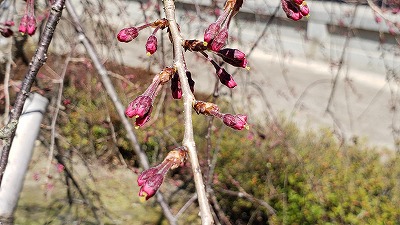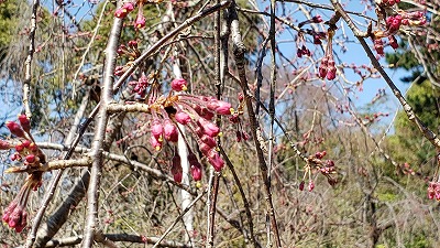 昨日から特に気温がかわらなかった為か、紅しだれは同じく3分咲きです。