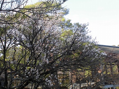 さて神苑の桜の一種、寒緋とまた赤実大島が枝から白い花を咲かせてまいりました。