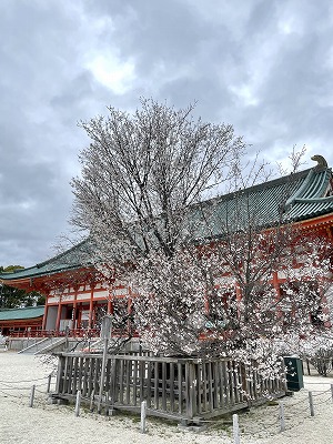 大極殿前庭にある左近の桜は満開