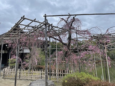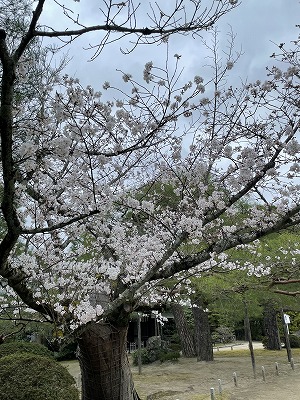 神苑の桜は八分咲きとご案内いたします。